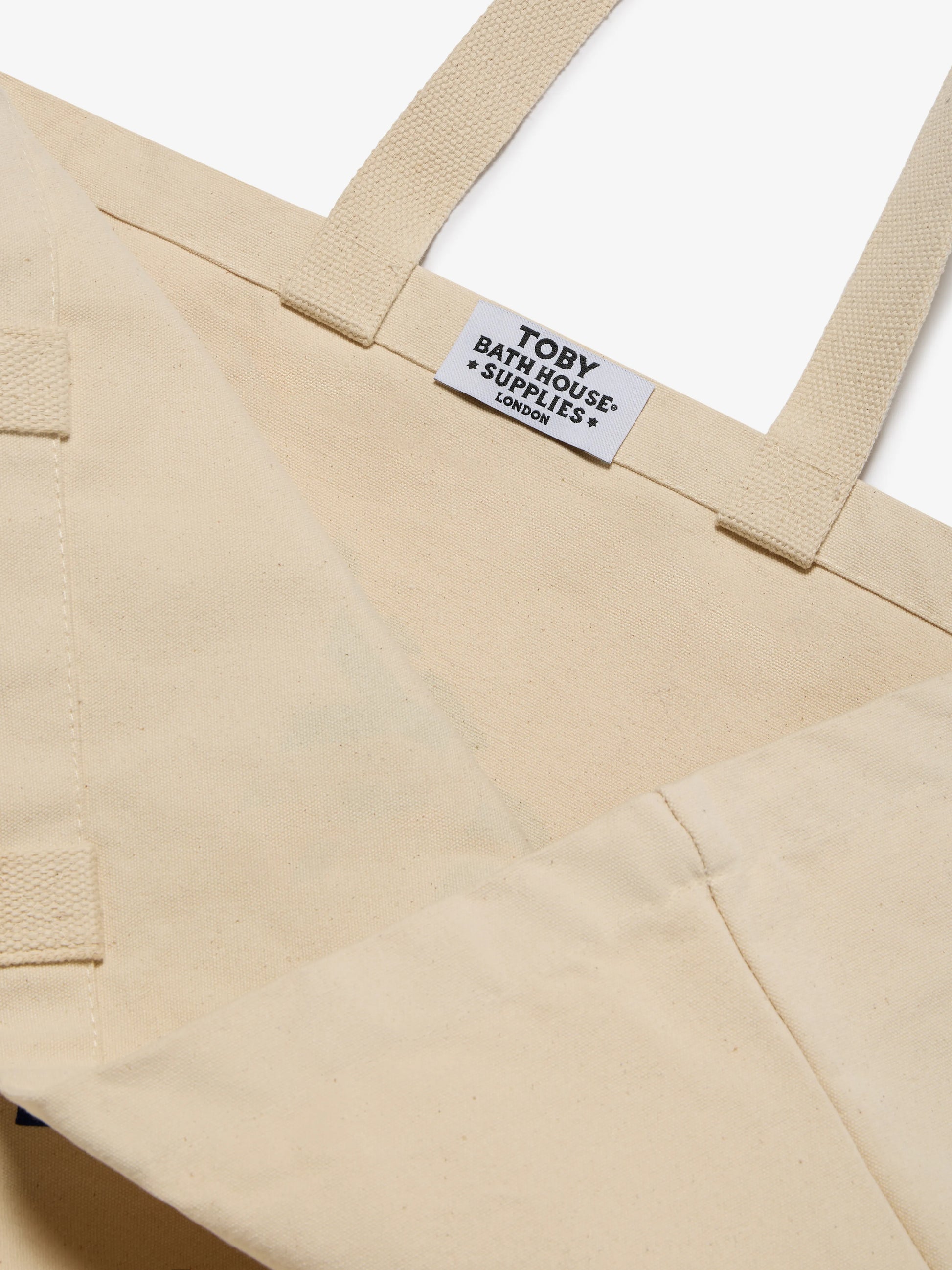 Heavy duty oversized canvas tote bag with the TBHS block logo printed on both sides. Made from heavyweight canvas, large enough to carry bathhouse essentials, books and beach gear.